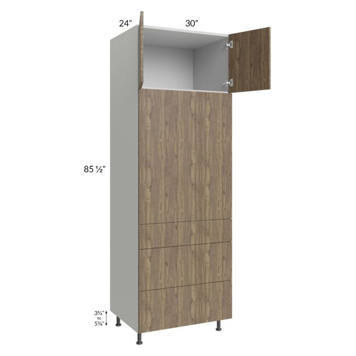 Milan Pecan 30x90 Single Oven Cabinet with 3 Drawers