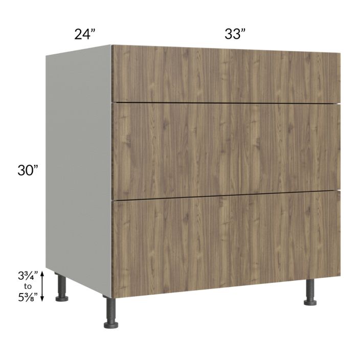 Milan Pecan 33" 3-Drawer Base Cabinet