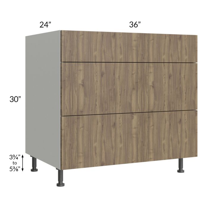 Milan Pecan 36" 3-Drawer Base Cabinet