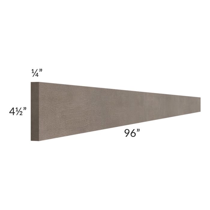 Toe kick that comes in an 8 foot strip. Only the front will be finished, the back, top, bottom, and sides are all unfinished.