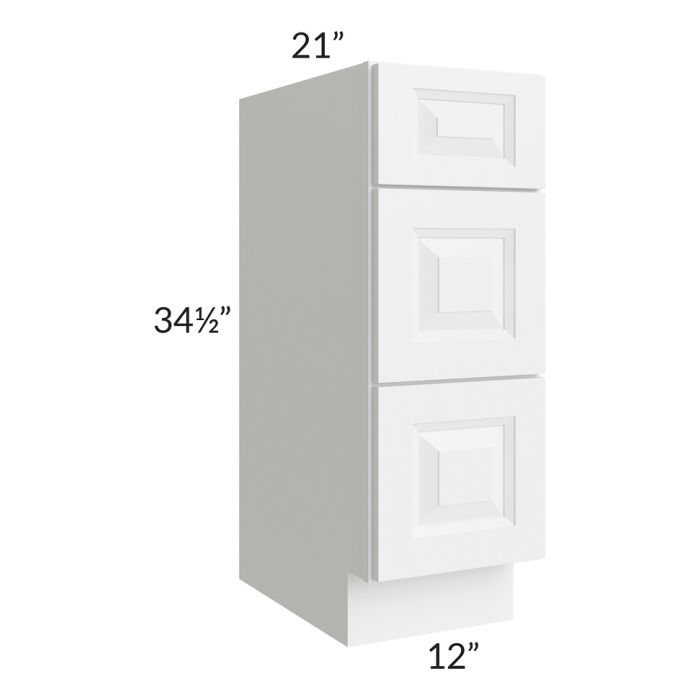 Pearl White 12" Vanity Three Drawer Base Cabinet