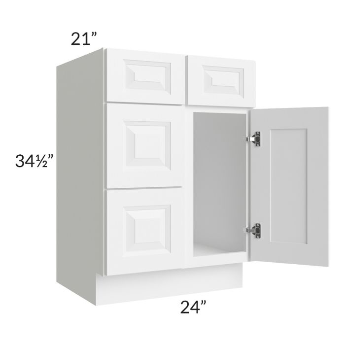 Description / Pearl White 24" Vanity Sink Base Cabinet (Drawers on Left)