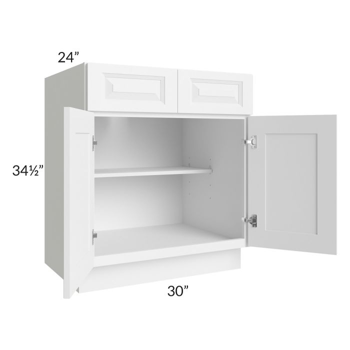 2 door base cabinet that has a half depth adjustable shelf and 2 drawers.