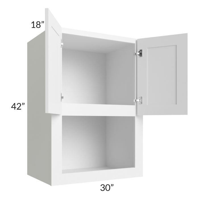 Microwave cabinet that has an opening dimension of 26-7/8"W x 18-1/2"H and a shelf depth of 20". There are no upper shelves behind the doors above the opening. *Please note this cabinet has a depth of 18"*
