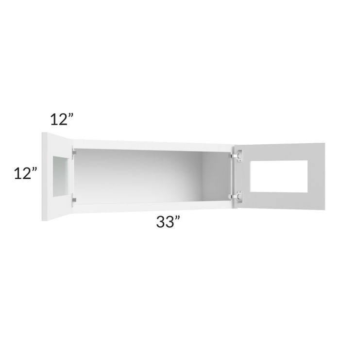 Description / Pearl White 33x12 Decorative Wall Cabinet with Plain Glass