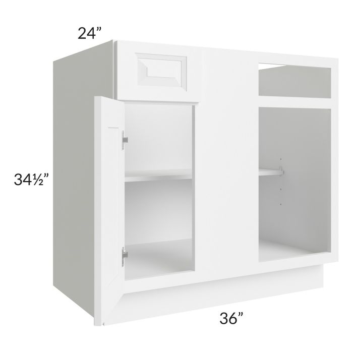 Blind corner base cabinet that must be pulled a minimum of 4" from the wall. It may be necessary to pull further to allow clearance for door and drawer hardware. It can be pulled a maximum of 9". The door is 14-1/2"W, and the blind area is 22"W x 28-1/2"H. A filler will be needed to go adjacent to the blind cabinet so the door/drawer will open properly.