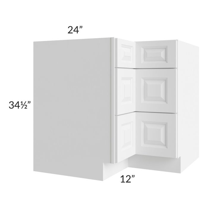 Pearl White 36" Corner Three Drawer Base Cabinet
