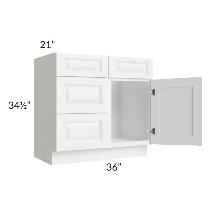 Pearl White 36" Vanity Sink Base Cabinet (Drawers on Left)