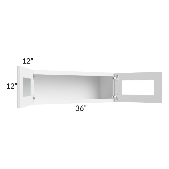 Description / Pearl White 36x12 Decorative Wall Cabinet with Plain Glass