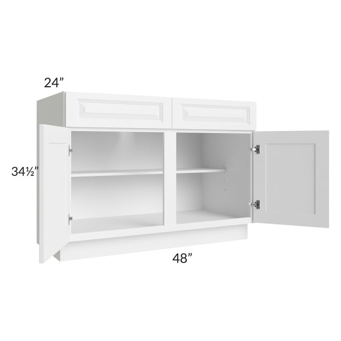 2 door base cabinet that has 1 half depth adjustable shelf and 2 drawers. This cabinet does have a center stile and will not have butt doors.