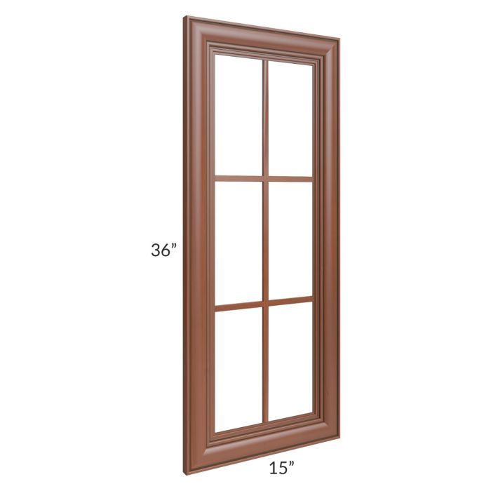 Phoenix Caramel Glaze 15x36 Mullion Glass Door Only (can be used with a 24x36 corner cabinet)