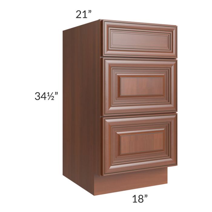 Phoenix Caramel Glaze 18" Vanity 3-Drawer Base Cabinet