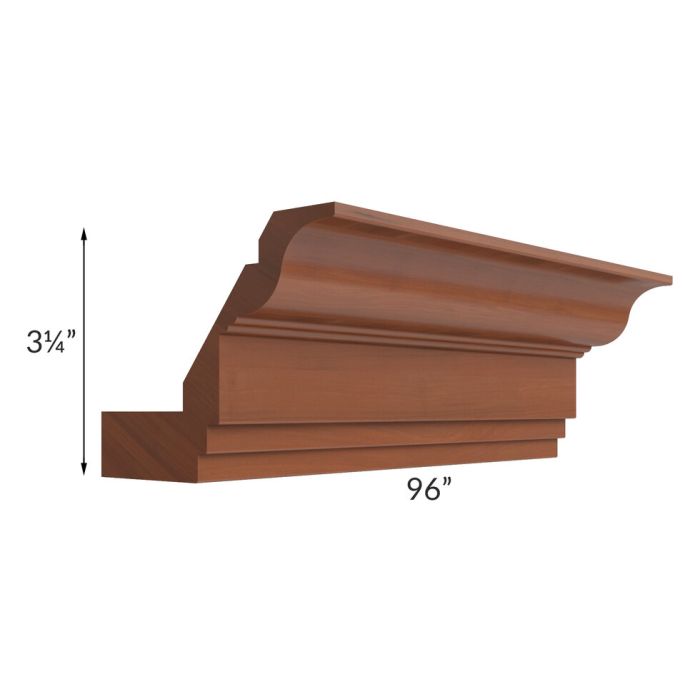 Classic crown molding that will be 3-1/4" high once installed. Can be used with the DMI8 Dentil Molding or RMI8 Rope Molding inserts. Crown will have a 'heel' attached to the base to attach to the top of wall cabinets. If installing crown directly to the wall or the ceiling, the Classic Crown Molding (CM8) will work better since it does not have the 'heel'.