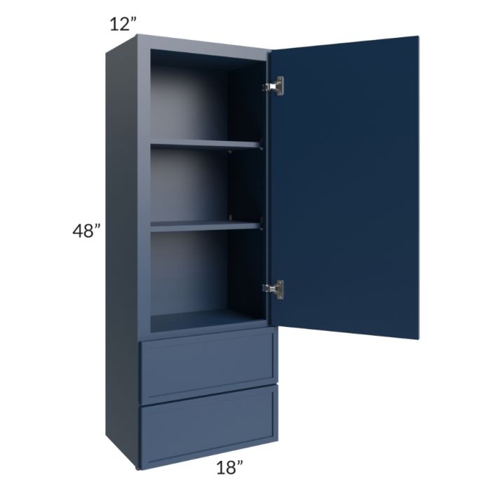 Portland Navy Blue 18x48 Wall Cabinet With Drawers