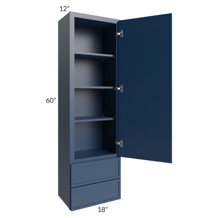 Description / Portland Navy Blue 18x60 Wall Cabinet With Drawers