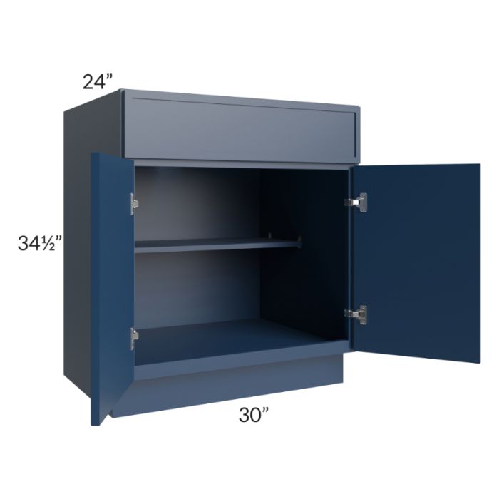2 door base cabinet with 1 drawer and 1 shelf. There is no center stile on this cabinet.