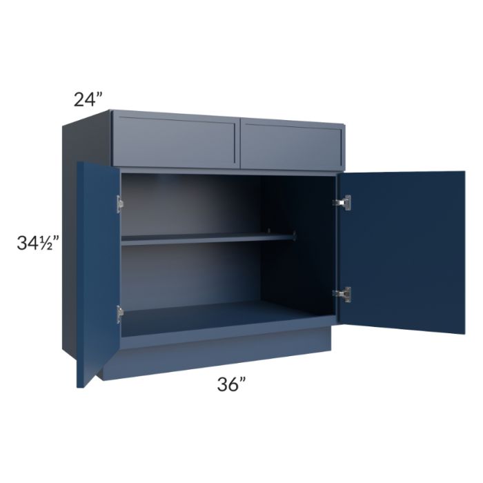 2 door base cabinet with 2 drawer and 1 shelf. There is no center stile on this cabinet.
