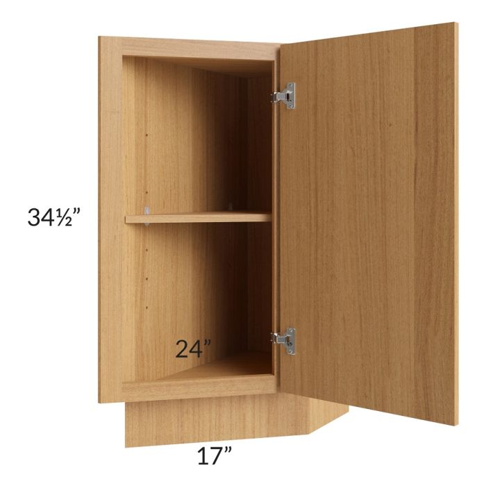 Full height door cabinet that is meant to be used at the end of a cabinet run. It will have a 24" deep side on the left which gets installed against the adjacent cabinet. The door is angled and the exposed side of the cabinet (on the right) will be 12" deep. Comes with 1 shelf.