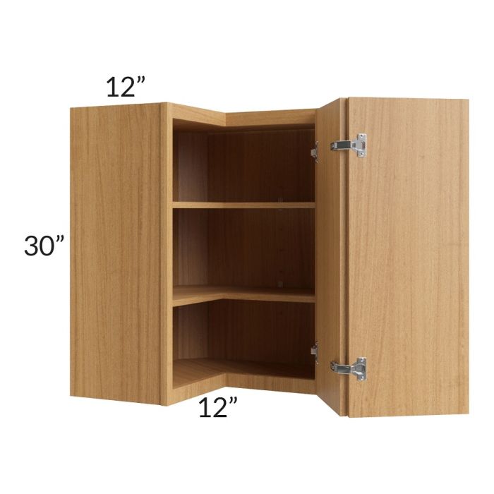 Wall corner cabinet with a 90 degree, bi-fold door. The cabinet will have 2 shelves. It will take up 24" of wall space out from each corner.