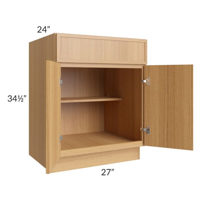 2 door base cabinet with 1 drawer and 1 shelf. There is no center stile on this cabinet.