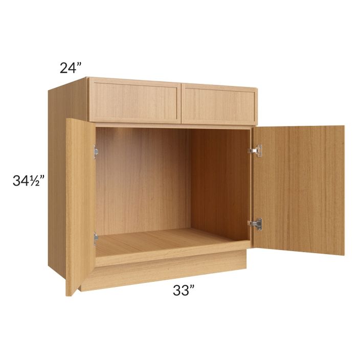 2 door sink base cabinet that comes with 2 false drawer front and no shelves or center stile. This cabinet does have a full 1/2" back.