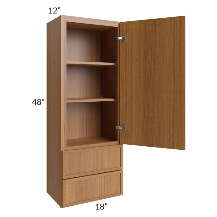 Description / Portland Walnut 18x48 Wall Cabinet With Drawers