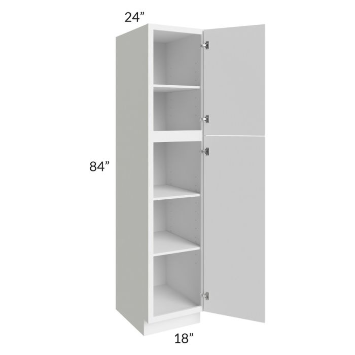 Wall pantry cabinet with 2 doors, 1 smaller door on top and 1 larger door on bottom. This pantry cabinet comes with is 1 fixed shelf and 3 adjustable shelves. Measurements are as follows: Top/Middle/Bottom door width = 17.5625". Top door height = 29.3125". Middle/Bottom door height = 49.25".