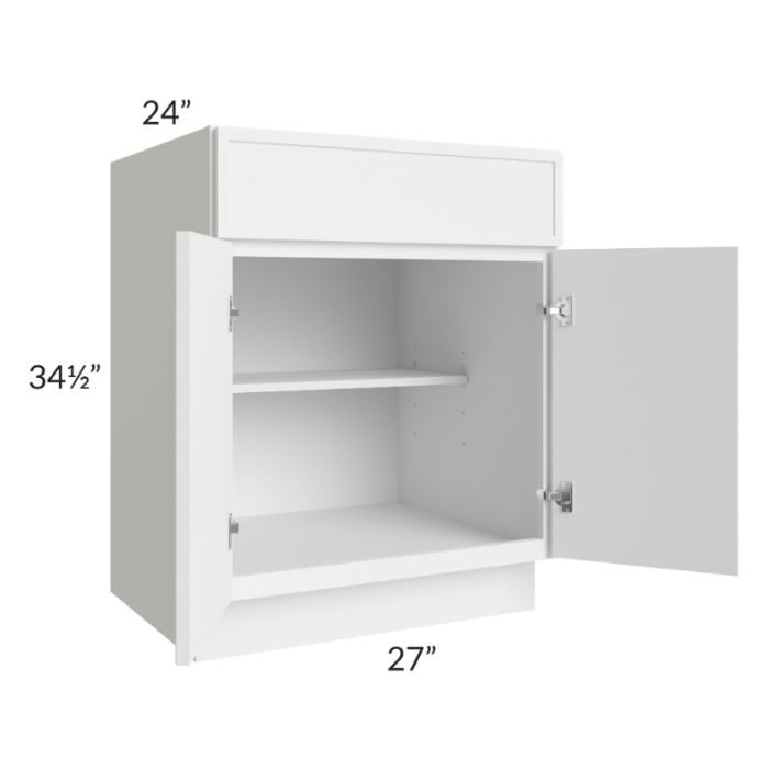 2 door base cabinet with 1 drawer and 1 shelf. There is no center stile on this cabinet.