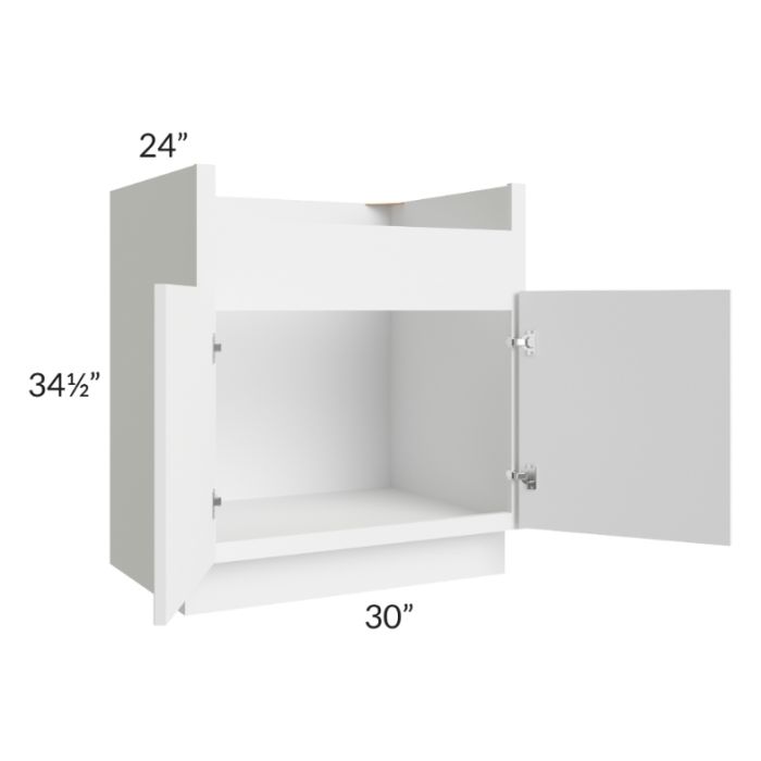 Farm sink base cabinet that will fit most farm sinks that are 24" to 27" wide. The tallest farm sink that will work with this cabinet is 10-3/4". Doors are each 14-1/2"W x 19"H. The height from the door cutout to the top of the face frame is 11-1/4". The width of the top opening is approximately 23-3/4". The height from the top of the opening to where the horizontal stile begins is 2-7/8", and the stile height is 8-3/8".