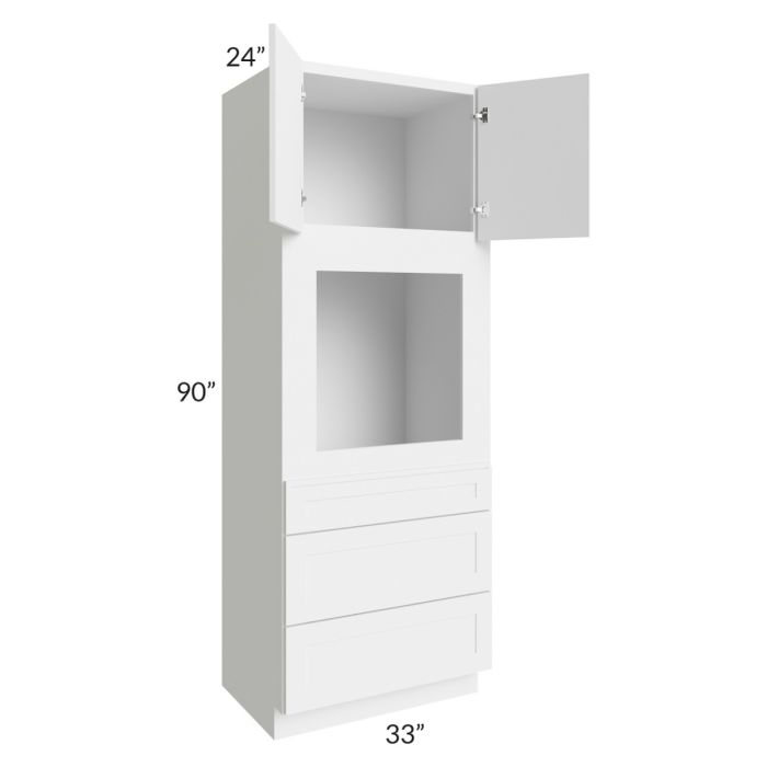 Oven cabinet with 2 doors on top of the oven opening and 3 drawers on bottom, there is no center stile. The oven opening measurements are as follows: 24"H x 24"W.