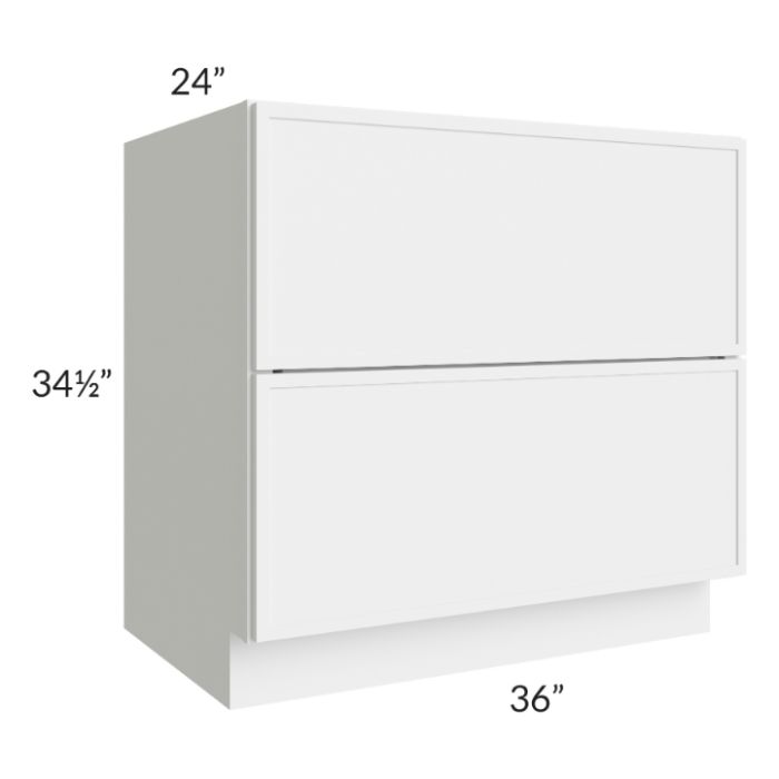 Description / Portland White 36" 2-Drawer Base Cabinet