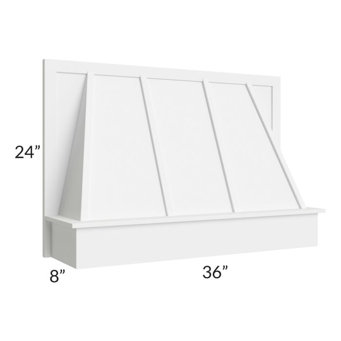 Wood range hood with no decorative rail. This hood is designed to be installed between two cabinets. This is for an actual hood, not a hood cover and a separate liner and blower will be needed.