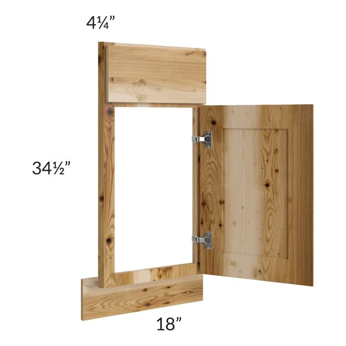 Corner sink front that will take up 36" of wall space from the corner out, on each wall, once installed. This is for the front only (face frame, door and drawer front) and will not include a floor or cabinet box. The corner sink front floor is also available, sku: CSFFLOOR.