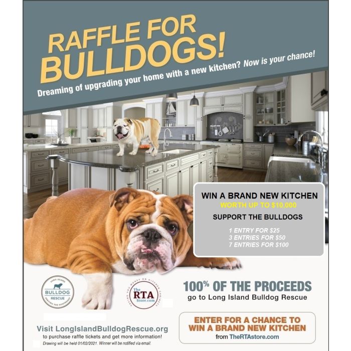 During the period from September 1st, 2020, 9:00 AM EST through 11:59 PM EST on January 1st, 2021 (the “Sweepstakes Period”), all applicants may purchase raffle tickets through Longislandbulldogrescue.org, TheRTAStore.com or biddingforgood.com. All entries must be received during the Sweepstakes Period to be eligible. When an order is placed, we will complete the ticket by filling in the name, address, email address and phone number.