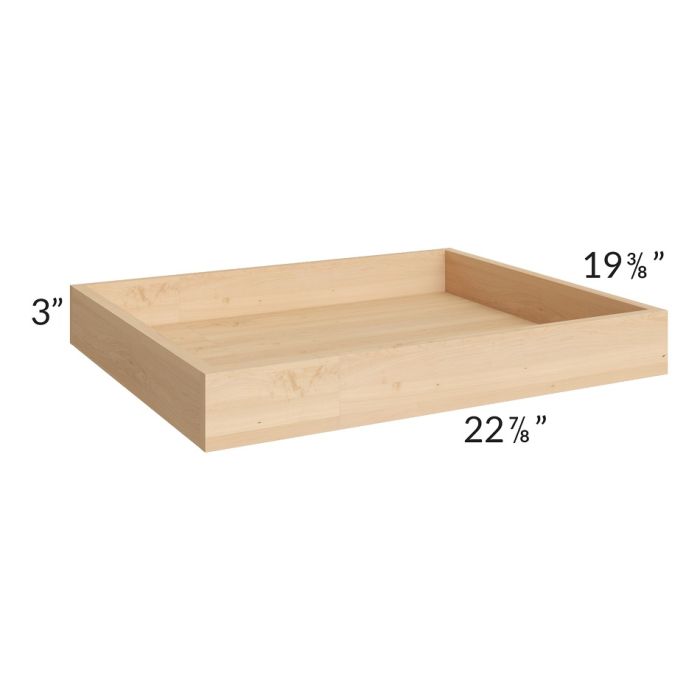 Roll out tray for a 27" base cabinet. Glides will be ball bearing glides and are not soft-close.