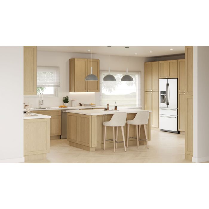 The full-overlay door style leaves roughly a 1/4" clearance on the edge. If installed directly against a wall or deeper cabinet and a cabinet door opening of at least 90 degrees is desired, scribe molding should be installed between the cabinet and the wall (or deeper cabinet). If not, the door may not be able to open a full 90 degrees. For a full opening, a space of at least 1/4-1/2" is necessary, a larger space may be needed depending on the decorative hardware used on the cabinets. The cabinet depth measurement listed is the depth from the front of the face frame to the back of the cabinet, and does not include the cabinet door depth. Cabinet specs are subject to change without notice. *Cabinet measurements are typically converted from metric to inches and manufacturers will commonly round up to the nearest 1/4 inch. This can cause a measurement to be off by a fraction of an inch (less than 1/4") which is within normal industry standards* Schematic images and renderings are generic and may not represent exact construction details for each collection. The exact specifications for this collection can be found in the construction details listed above. |