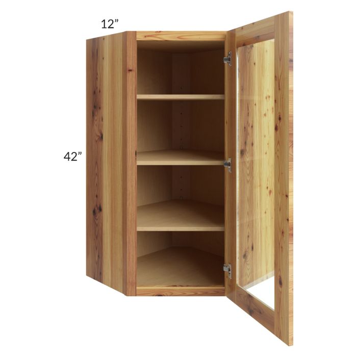 Rustic Shaker 24x42 Glass Diagonal Corner Wall Cabinet