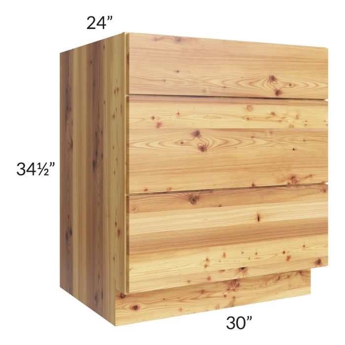 Rustic Shaker 30" 3-Drawer Base Cabinet