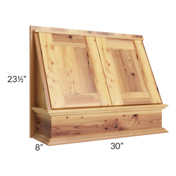 Range hood front that must be installed between 2 cabinets for support. Before installation of the range hood front, the blower should be installed and the depth adjusted using fillers and/or panels to fit the blower. The sides will be pre-finished to match.