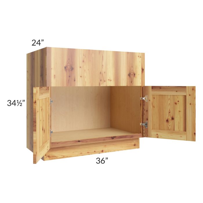 Farm sink base cabinet that has no shelves or drawers. The doors are 18" high and the front apron will need to be cut on site to fit the farm sink.