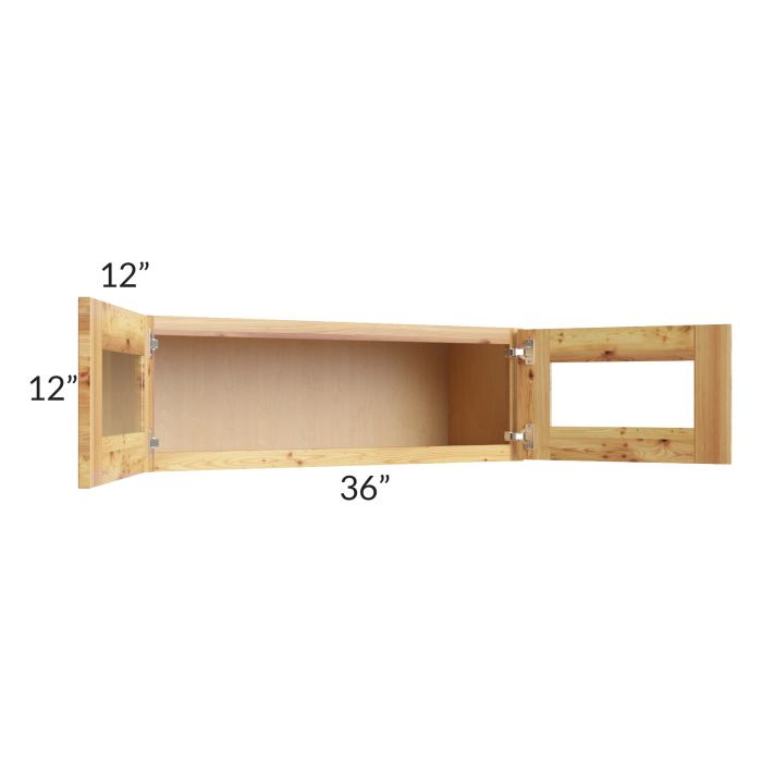 Rustic Shaker 36x12 Decorative Wall Cabinet with Plain Glass