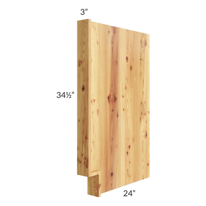 Base end panel that has a 1/2" thick panel with a 3" wide filler on the front. Can be installed on the left or right. Commonly used next to an exposed appliance, like a dishwasher.