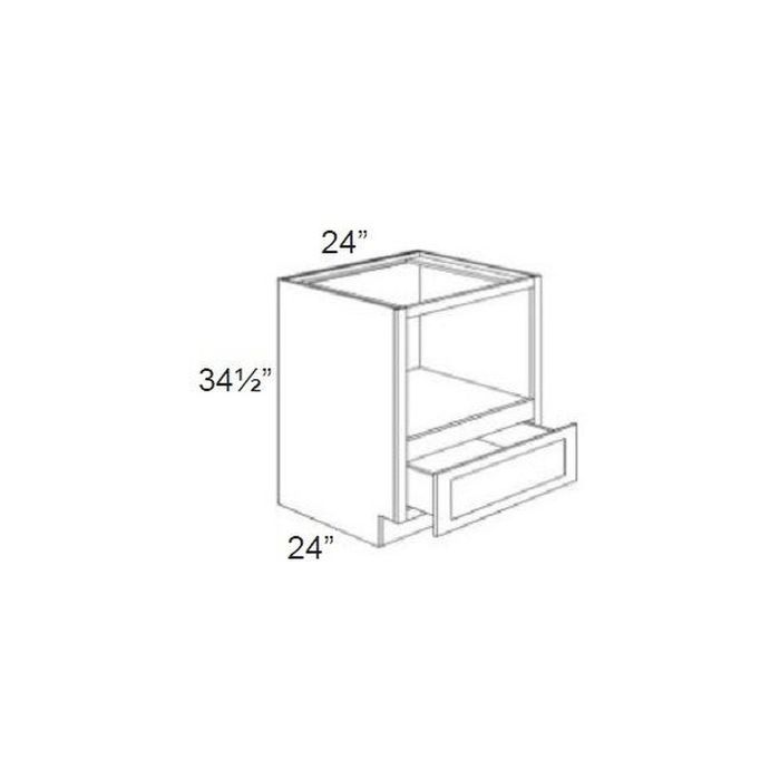 Base microwave cabinet with (1) 9" high drawer on bottom. Opening will be 18"W x 12-1/2"H. It can be widened on site up to 22" W x 19"H, if needed. The space from the shelf to the top of the cabinet is 20".