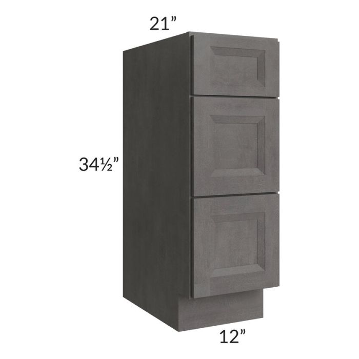 Salem Dark Grey 12" Vanity 3-Drawer Base Cabinet