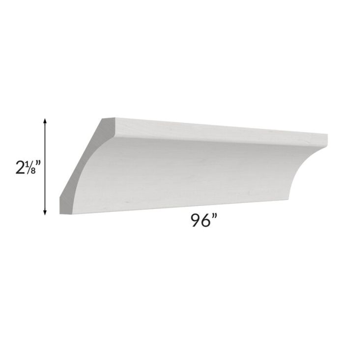 Small cove molding, when installed, it will be 2-1/8" high and will stick out from the cabinet 2-1/8".