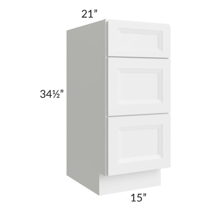 Description / Salem White 15" Vanity 3-Drawer Base Cabinet