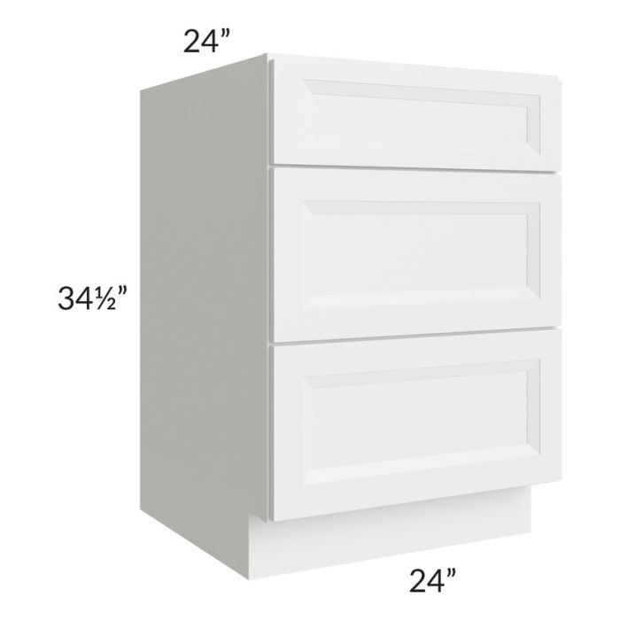 3 drawer base cabinet. Top drawer front is 6-3/4" high, middle and bottom drawer fronts are 11-1/4" high.