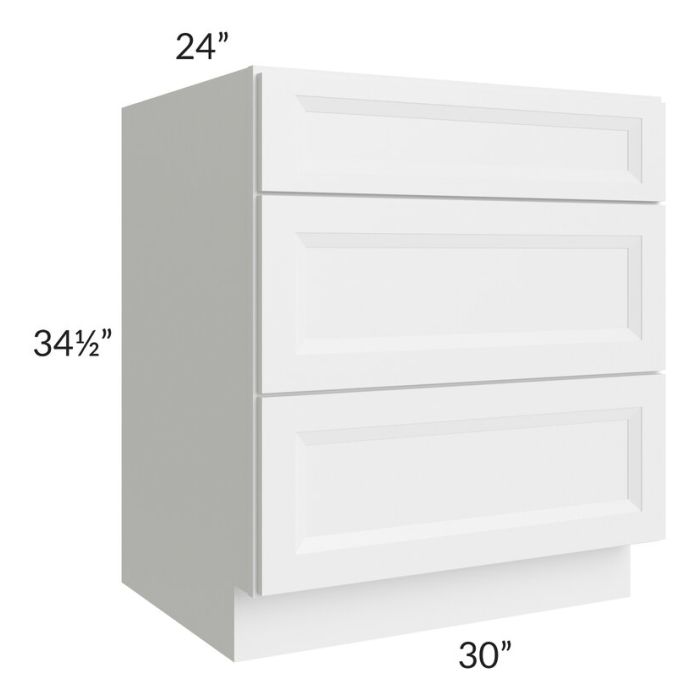 3 drawer base cabinet. Top drawer front is 6-3/4" high, middle and bottom drawer fronts are 11-1/4" high.