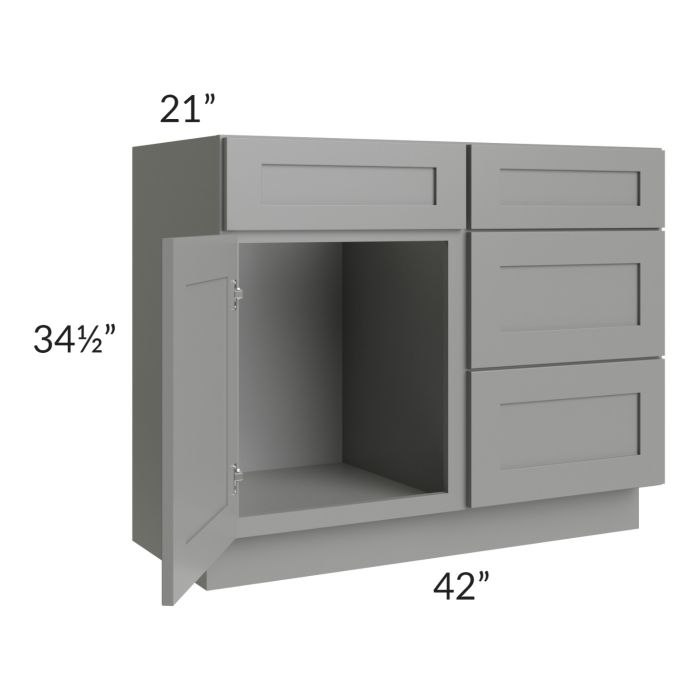 Shale Grey Shaker 42" Vanity Sink Base Cabinet (Drawers on Right)