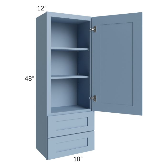Sky Blue Shaker 18x48 Wall Cabinet With Drawers